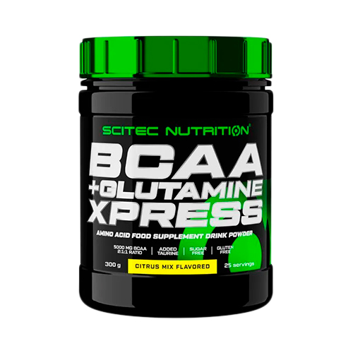 BCAA+Glutamine Xpress от Scitec Nutrition – это новая формула, объединяющая в себе незаменимые аминокислоты ВСАА и необходимый для спортсменов глютамин; Комплекс BCAA + Glutamine Xpress от Scitec Nutrition содержит в одной порции большое количество BCAA и глютамина; Причем находятся они в соотношении 1:1, по 5 г BCAA и глютамина на каждую порцию; Данные аминокислоты играют одну из ключевых ролей в условиях высокоинтенсивных тренировок, поскольку стимулируют синтез белка и мышечный рост, а также повышают энергетические возможности организма; Нужны они и после тренировочной сессии для организации эффективного восстановления организма; Организм человека не способен самостоятельно синтезировать аминокислоты BCAA: лейцин, изолейцин и валин, потребность в которых в разы вырастает в период тренировок; Именно они во многом отвечают за прирост «сухой» мышечной массы, восстановление и вывод из организма продуктов распада; Аминокислоты BCAA поступают в организм вместе с пищей, но никакой, даже самый питательный рацион не способен покрыть потребность в них организма активно тренирующихся людей; Поэтому прием спортивных добавок на основе лейцина, изолейцина и валина, например, BCAA+Glutamine Xpress от Scitec Nutrition, становится необходимостью;
