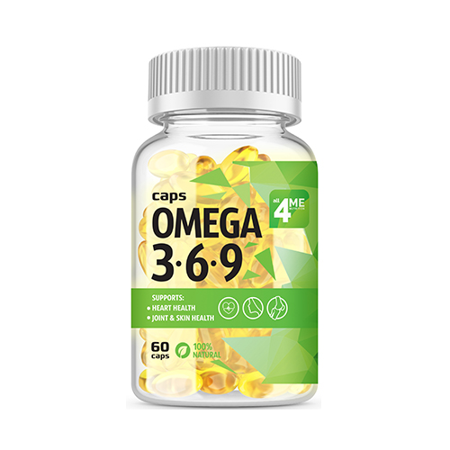 4Me Nutrition Omega 3-6-9 60 капс — это источник полезных и незаменимых жиров; Удобные капсулы легко пьются; Грамотная дозировка обеспечивает ваш организм 6 необходимыми жирными кислотами, в том числе ЭПК и ДГК, которые содержатся исключительно в рыбе и морепродуктах; Эта добавка предназначена для всех, кто ведет активный образ жизни, следит за своим здоровьем и питанием; Полезные свойства: Источник 6 полезных незаменимых жирных кислот С рыбьим жиром, льняным маслом и маслом огуречника Удобные капсулы Нормализует уровень холестерина Защищает суставы Нормализует обмен веществ и пищеварение Улучшает качество кожи и волос Повышает общий тонус организма Омега 3-6-9 помогает нормализовать обмен веществ и пищеварение, снизить уровень “плохого” холестерина за счет рыбьего жира, улучшить качество кожи и волос за счет полезных растительных масел; Она способствует защите суставов под физической нагрузкой, помогает справиться с разными воспалениями;