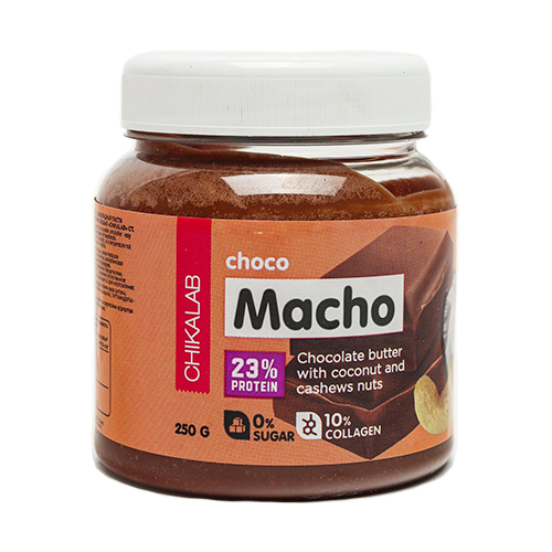Шоколадная паста Choco Macho от Chikalab с содержанием кокоса и кешью - это возможность украсить ежедневный рацион сладким десертом, но при этом получить дополнительную пользу для организма; Состав пасты изобилует белком из гидролизованного коллагена (на 100 грамм пасты приходится 23 грамма белка) и не содержит добавленных простых сахаров; Это очень важное преимущество;
