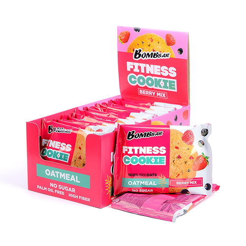 Перекусывайте с пользой для своего организма овсяным низкокалорийным печеньем Oatmeal Fitness Cookie от Bombbar; В каждом печенье весом 40 г содержится около 4 грамма белка из сывороточного концентрата и казеина; При этом вы не найдете в составе добавленных простых сахаров, глютена, консервантов и красителей; В зависимости от вкуса в каждом печенье содержатся либо орехи, либо ягоды; Несомненное преимущество такого печенья – высокий уровень клетчатки, которая насыщает и тем самым заботится о том, чтобы вы не переедали;