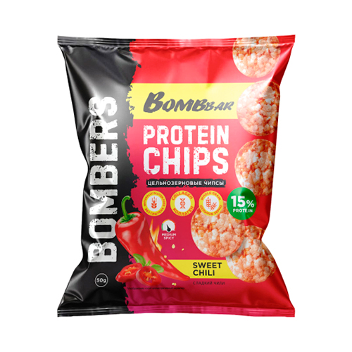 Хрустящие низкокалорийные протеиновые чипсы BOMBERS Новинка от Bombbar! Такие хрустящие, соленые и тающие во рту - это рисовые чипсы с низкой калорийностью, минимум жиров, но с порцией протеина в каждом укусе, в рецептуре используется гороховый белок;