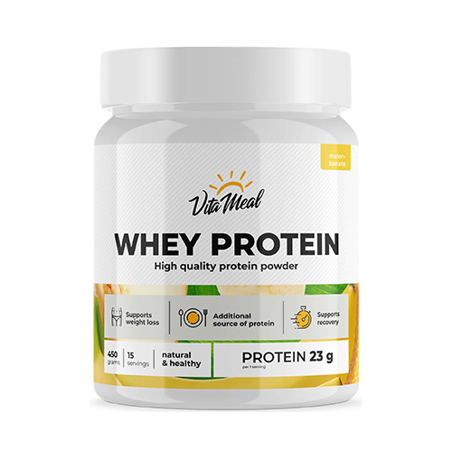 VitaMeal Whey Protein - это высококачественный источник дополнительного белка в виде порошка для приготовления протеинового коктейля;